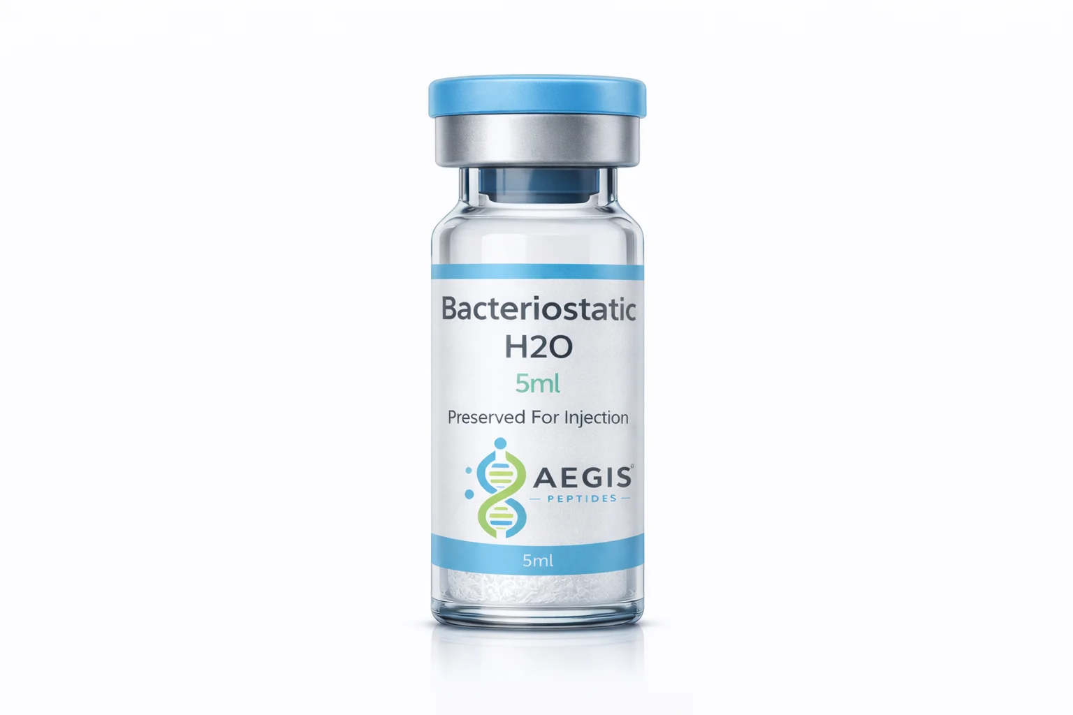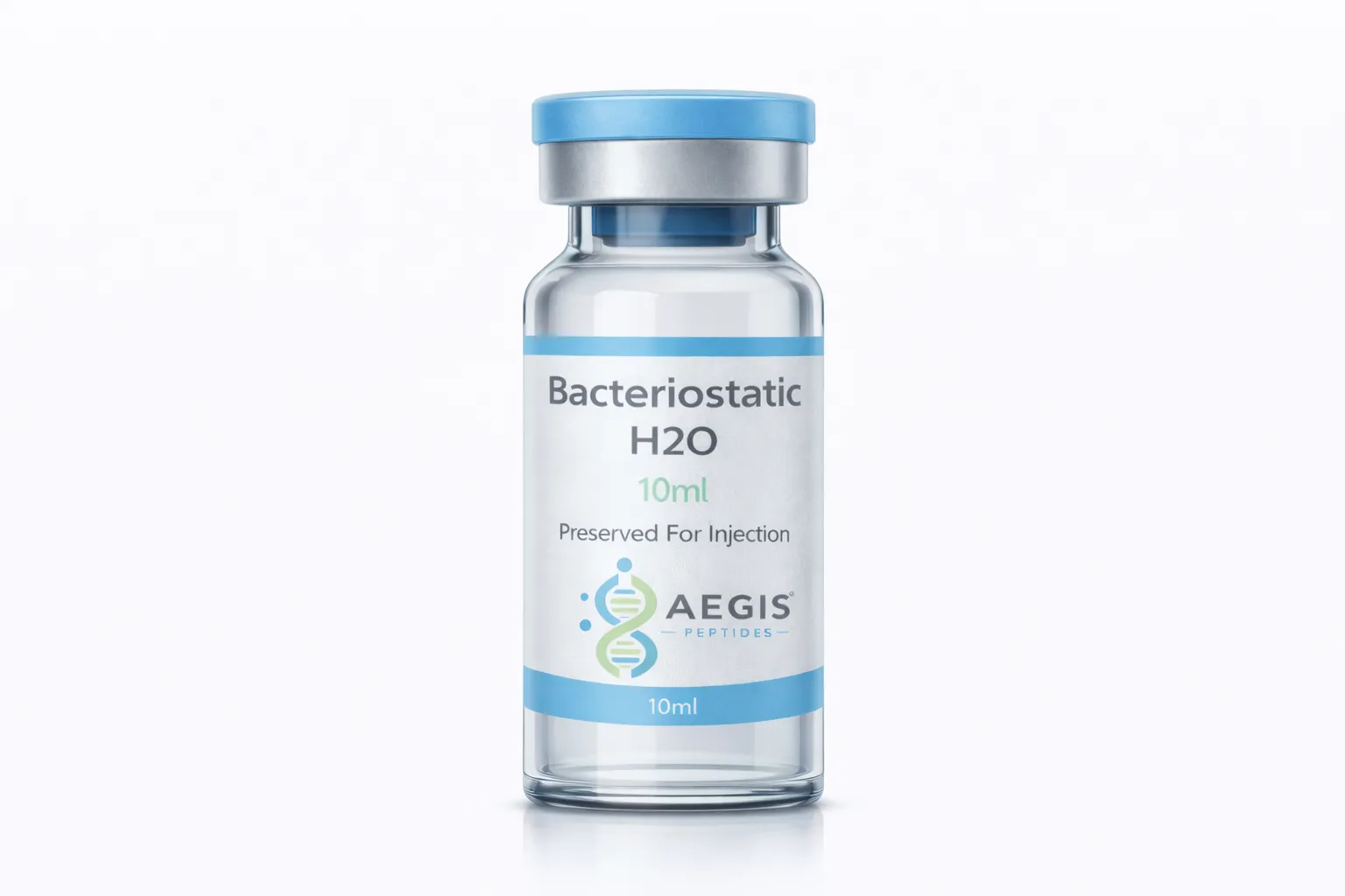 Sterile water preserved with 0.9% Benzyl Alcohol to inhibit bacterial growth. USP-grade Bacteriostatic Water is the standard solvent used for reconstituting lyophilized research peptides.